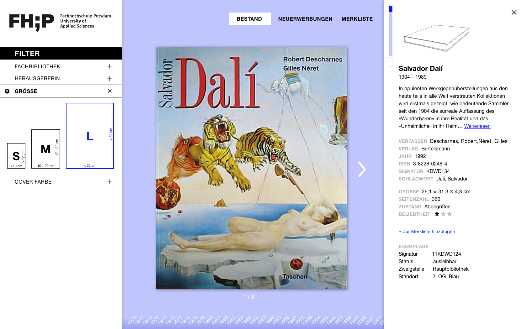 Größe - Die Bücher sind in drei Abmessungskategorien geteilt: Small (S), Medium (M) und Large (L)
